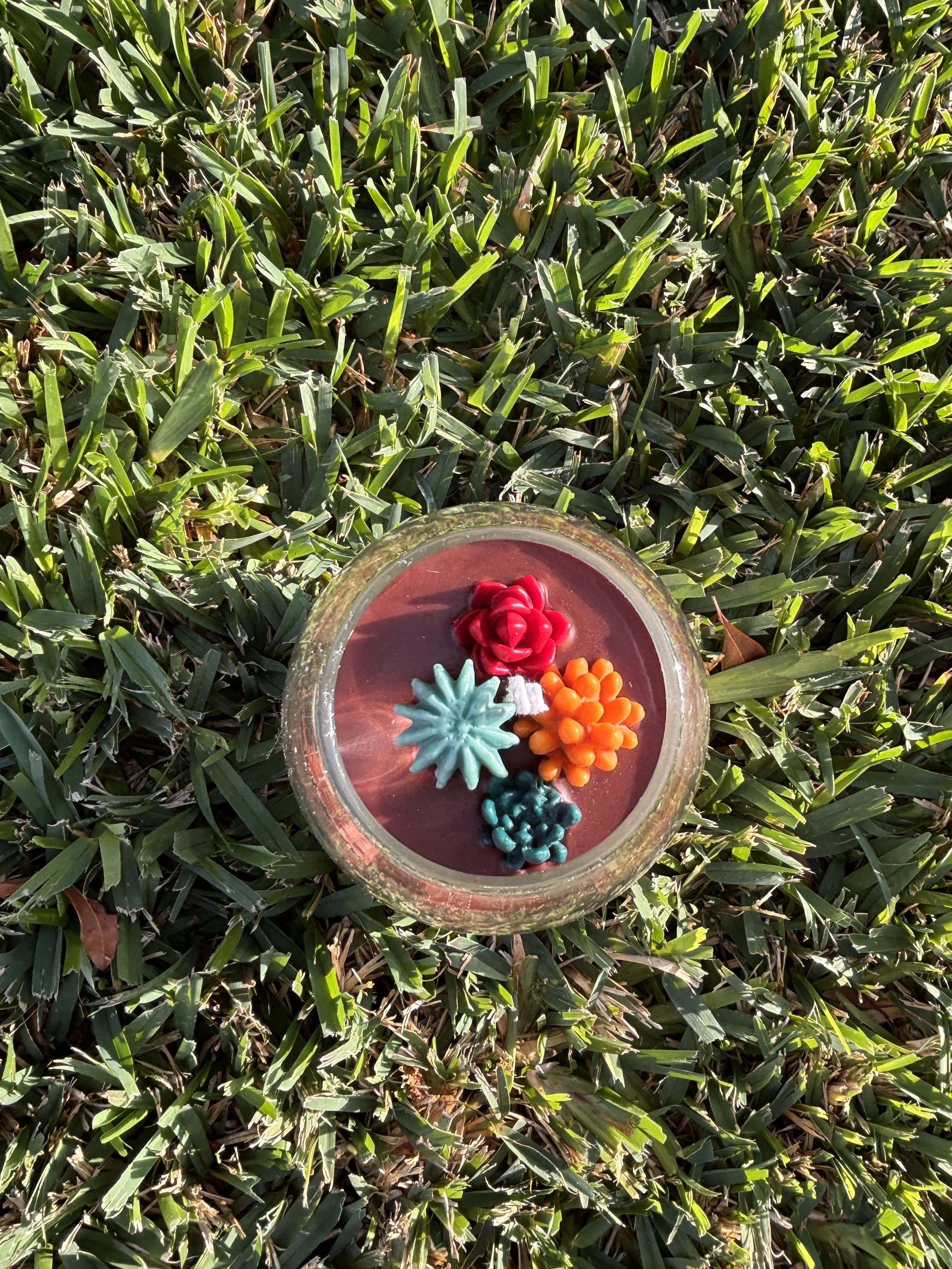 The candle features a unique curved glass container that beautifully reflects and refracts light, creating a mesmerizing ambiance when lit. The earthy tones and organic shapes evoke the serenity of a woodland escape, bringing the beauty of nature indoors.